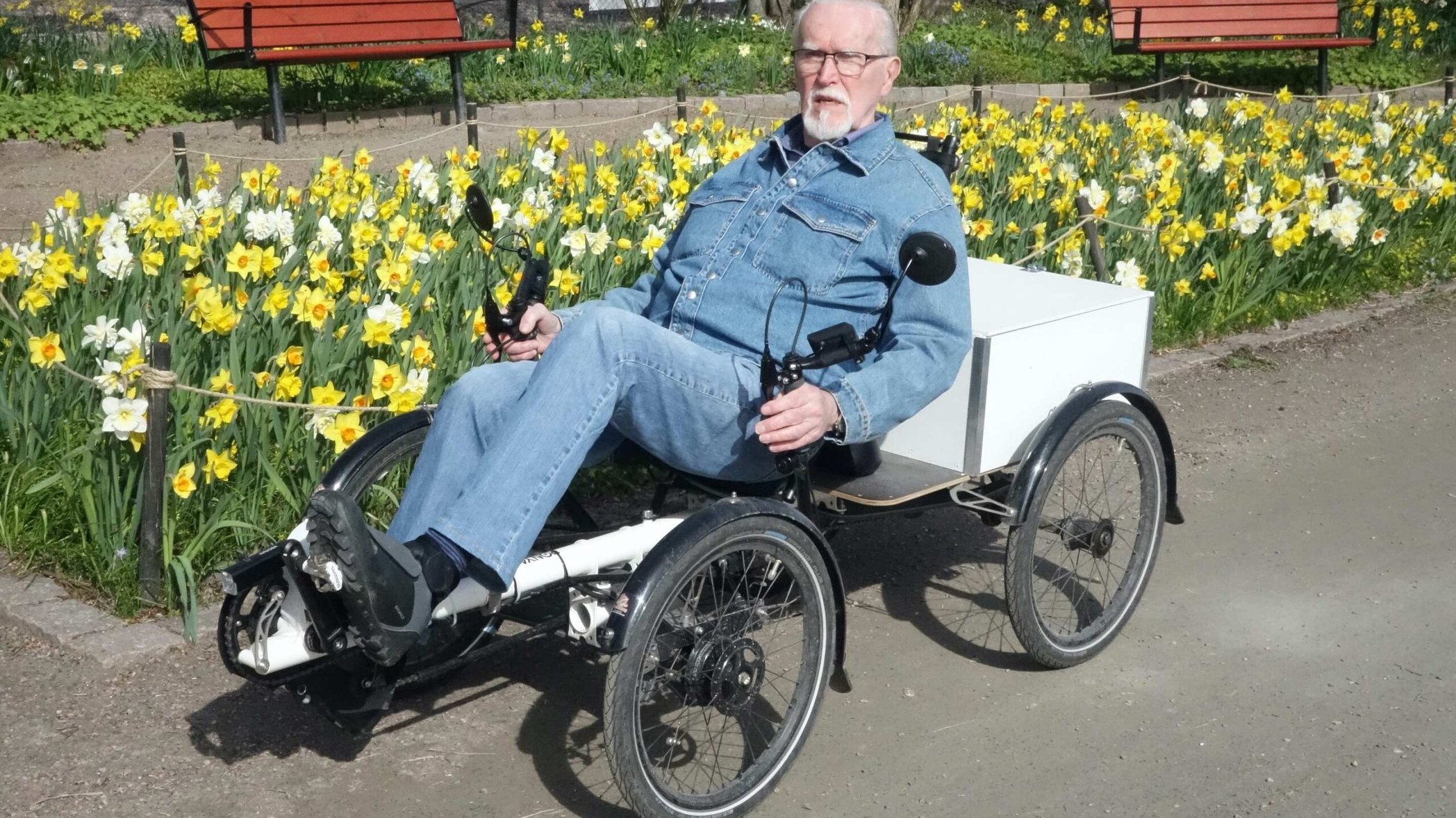 – Jag förstod direkt det, när jag fick syn på den. Med fyra hjul så är den otroligt mycket säkrare än trehjuliga liggcyklar, som jag visste kunde tippa lätt.