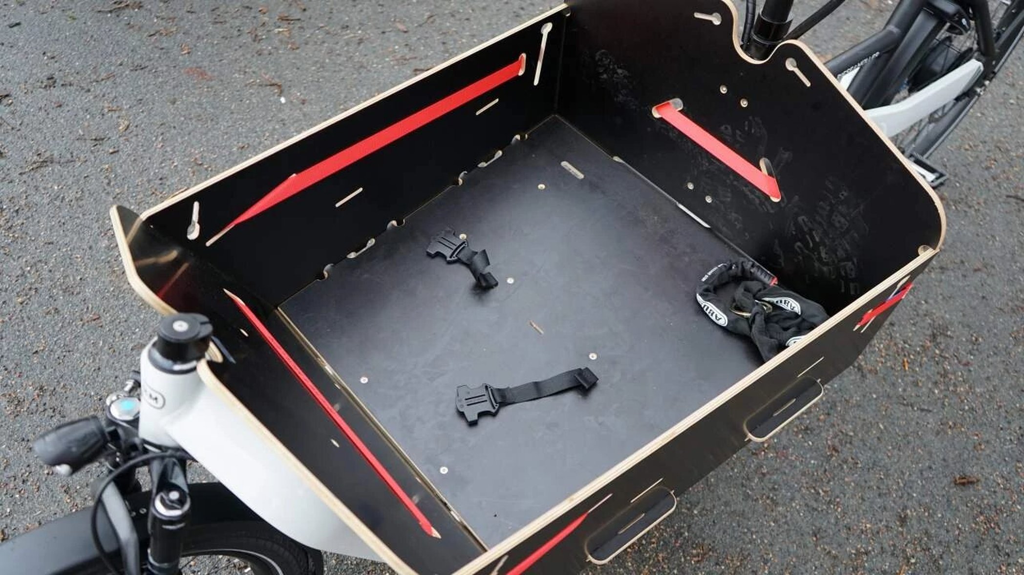 Utförandet på själva cykeln är inget att klaga på. En gedigen stum aluminiumram som ger stabil cykling. Finishen på ramen är i toppklass. Stödet som man drar upp cykeln på vid parkering är stadigt och bra. Själva ramkonstruktionen med ramrör både under och över batteriet skyddar och bidrar till ramens styvhet. Men lastlådan får mig närmast att tänka på Ikea. De olika delarna pusslas ihop och hålls sen sammanfogade av ett lastband, med en spännare av samma typ som man har till takräcken. Praktiskt och hållbart men en brutal lösning. Antingen tycker man det är en fräck lösning eller så längtar men efter något mer förfinat.